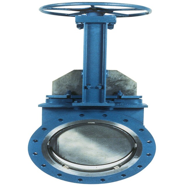 Unidirectional wafer‐design knife gate valves. One‐piece cast body with guides to support gate and seat wedges. Provides high flow rates with low pressure drop. Various seat and packing materials available. Face‐to‐face dimension in accordance with CMO standard. An arrow is marked on the body indicating the flow direction. This knife gate valve is suitable for liquids that contain a maximum of 5% suspended solids.